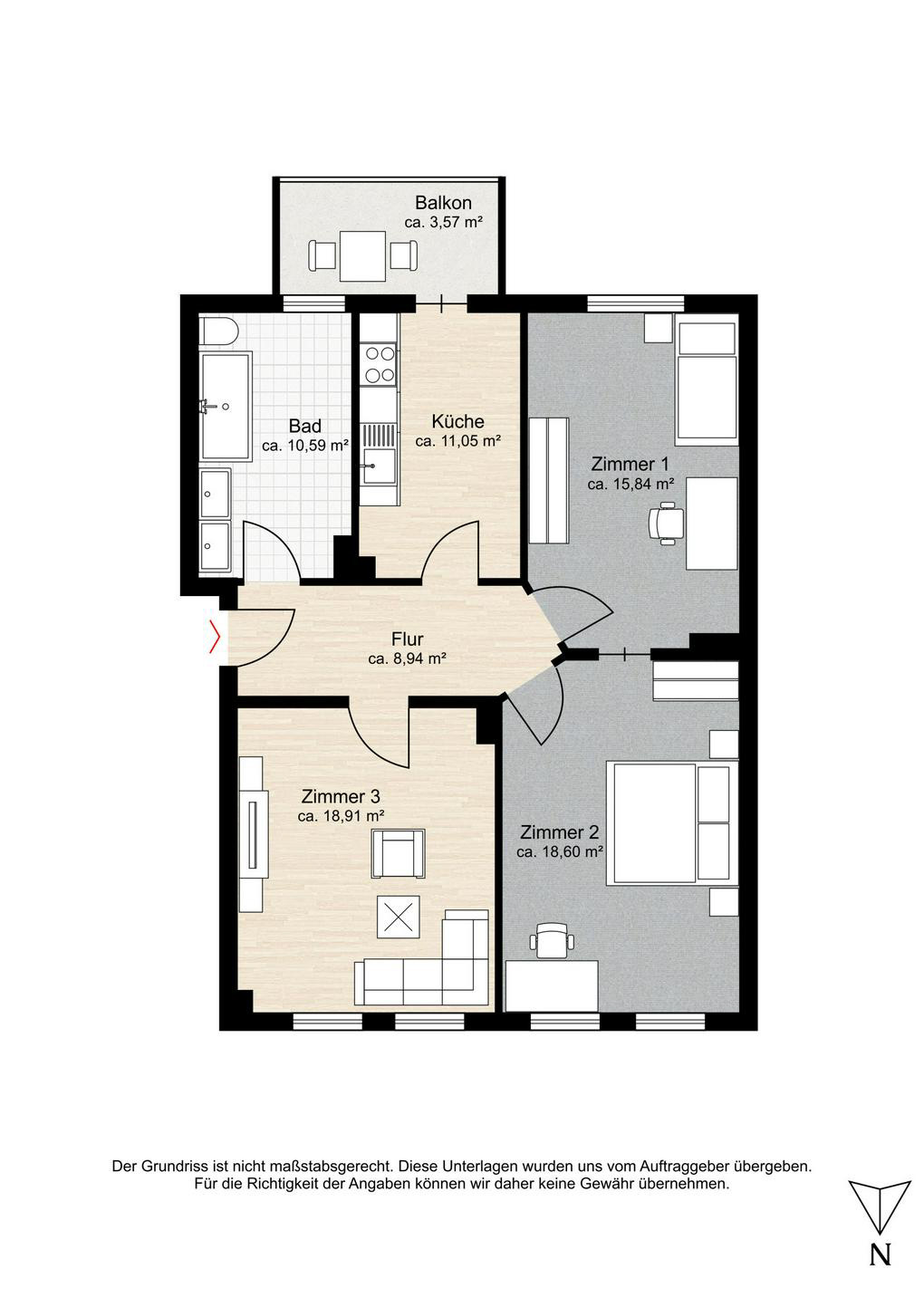 3 Zimmer, Küche, Bad, Balkon, 87 m²